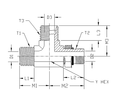 ITEM | P/N | Y HEX | T1 | T2 | L1 | L2 | D1 | D2 |