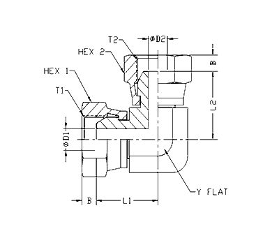 ITEM P/N T1 T2 L1 L2 D1 D2 B HEX 1 HEX 2 Y FLATS