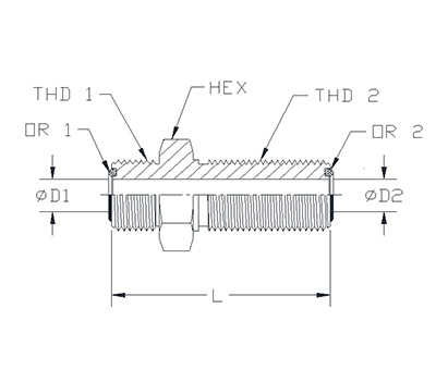 ITEM P/N HEX THD 1 THD 2 L D1 D2 OR 1 OR 2