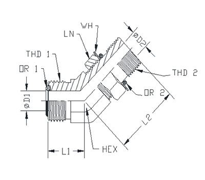 ITEM P/N HEX THD 1 THD 2 L1 L2 D1 D2 OR 1 LN WH OR 2
