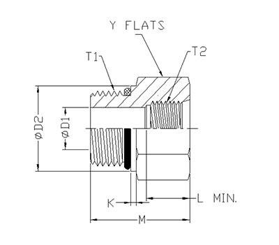 ITEM P/N Y FLATS T1 T2 D1 D2 K L MIN. M