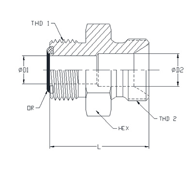 ITEM P/N HEX THD 1 THD 2 L D1 D2 OR