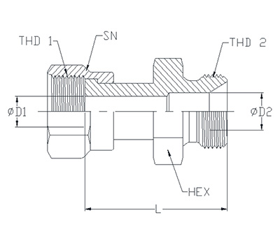 ITEM | P/N | HEX | THD 1 | THD 2 | L | D1 | D2 | SN |