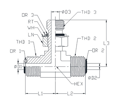 ITEM P/N HEX THD 1 THD 2 THD 3 L1 L2 L3 D1 D2 D3 OR 1 OR 2 LN WH RT OR 3