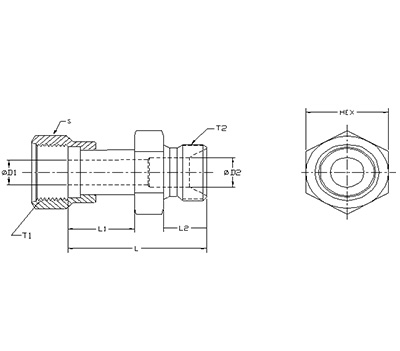 ITEM P/N T1 T2 L L1 L2 D1 D2 S HEX