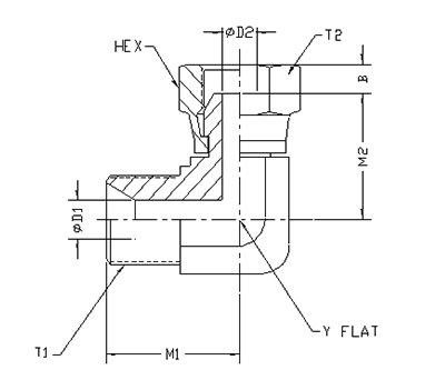 ITEM P/N T1 T2 M1 M2 B D1 D2 HEX Y FLATS
