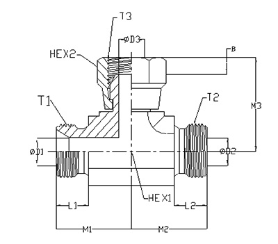 ITEM P/N T1 T2 T2 M1 M2 M3 L1 L2 B D1 D2 D3 HEX Y FLATS