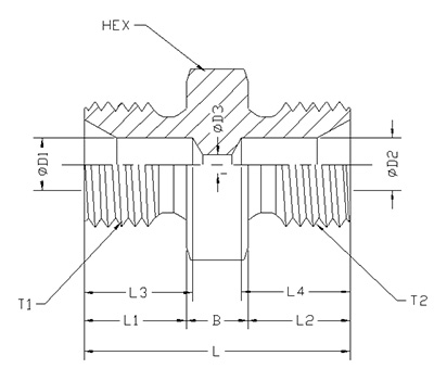 ITEM P/N T1 T2 D1 D2 D3 L1 L2 L3 L4 B L HEX