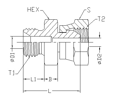 ITEM P/N T1 T2 D1 D2 L1 B L S HEX