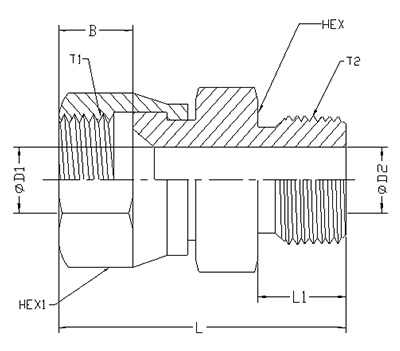ITEM | P/N | T1 | T2 | B | D1 | D2 | L1 | L | HEX1 | HEX2 |