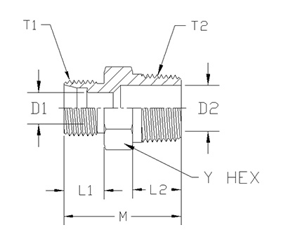 ITEM P/N Y HEX T1 M D1 T2 D2