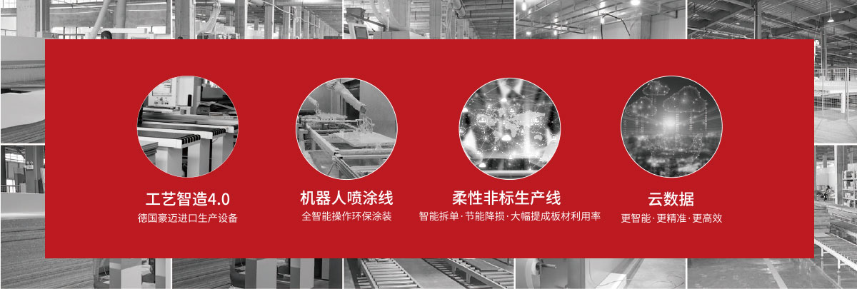 公司擁有強(qiáng)大的生產(chǎn)制造系統(tǒng),智能數(shù)控系統(tǒng)、環(huán)保UV涂裝工藝,并已率先在行業(yè)內(nèi)采用全自動(dòng)噴涂機(jī)器人,先后引進(jìn)豪邁開(kāi)料機(jī)、封邊機(jī)、打孔機(jī)等精密設(shè)備,家居生產(chǎn)線實(shí)現(xiàn)高度規(guī)?;c自動(dòng)化。